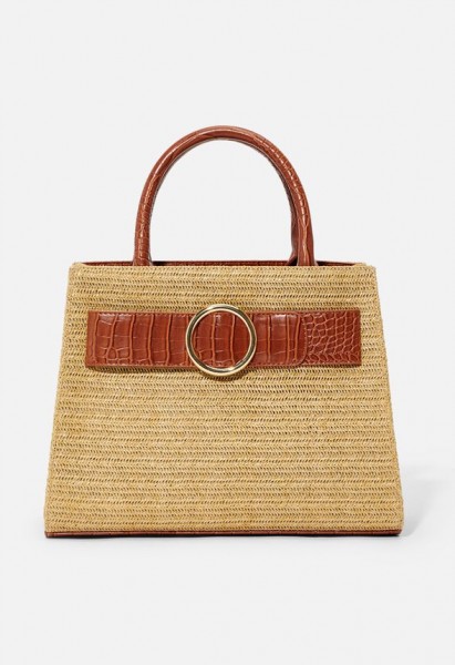L. Raffia Circle Hardwear Satchel - Cognac Multi